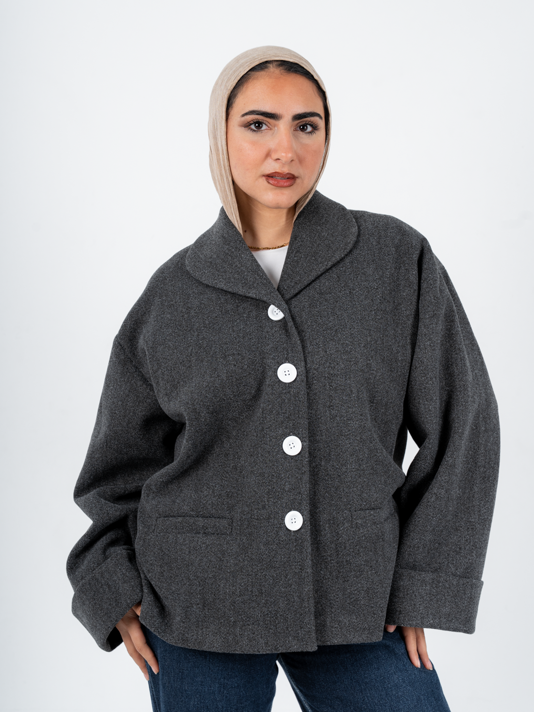 جاكيت واسع من الجوخ الناعم بتفاصيل نظيفة تُسهّل تنسيقه في الشتاء. اخترنا اسم Tokyo لأن...