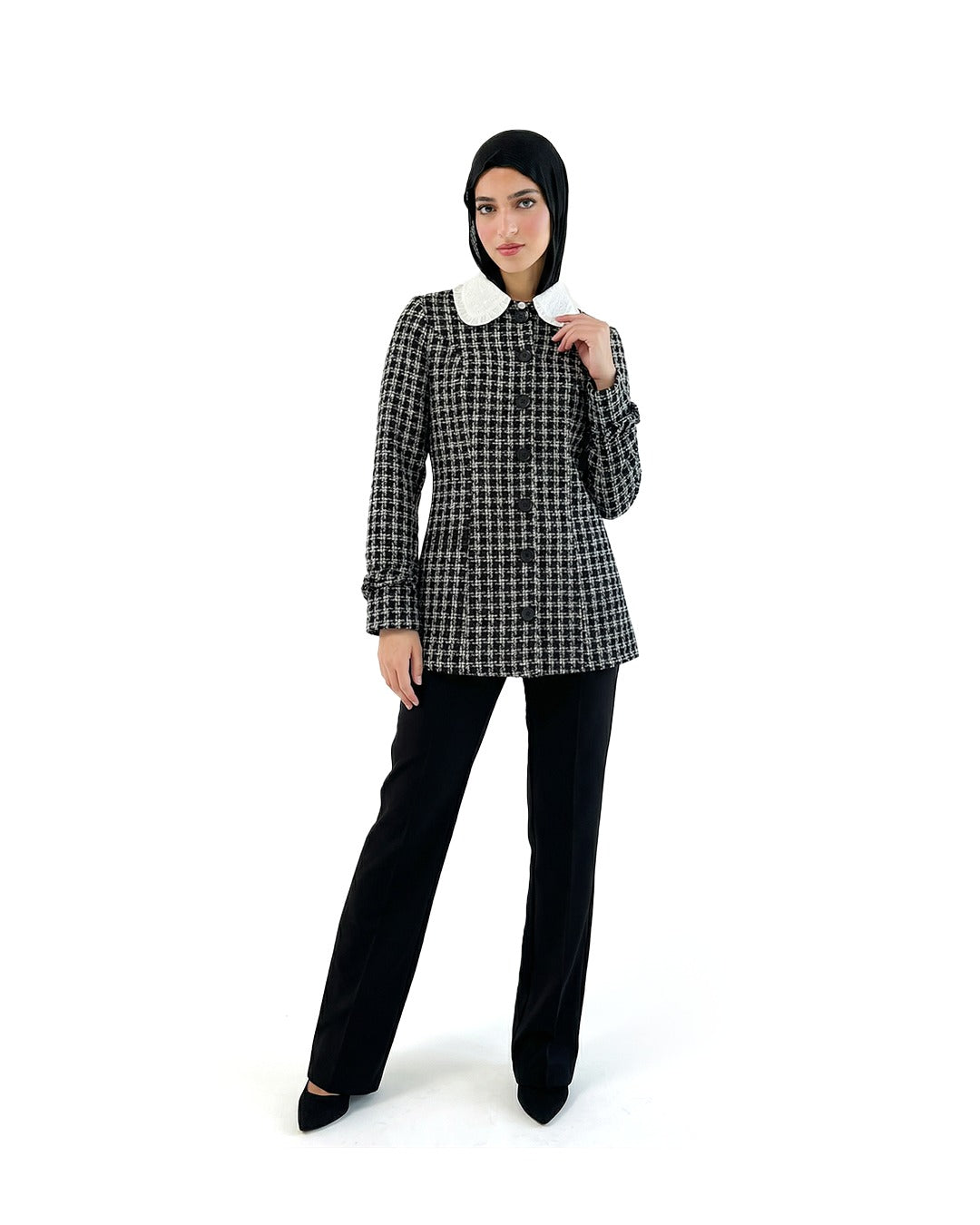 يمنحك الجاكت مظهرًا مرتبًا بسهولة، ويخدم استخدامك اليومي بسهولة. طوله يعطيك توازنًا في الإطلالة فور...