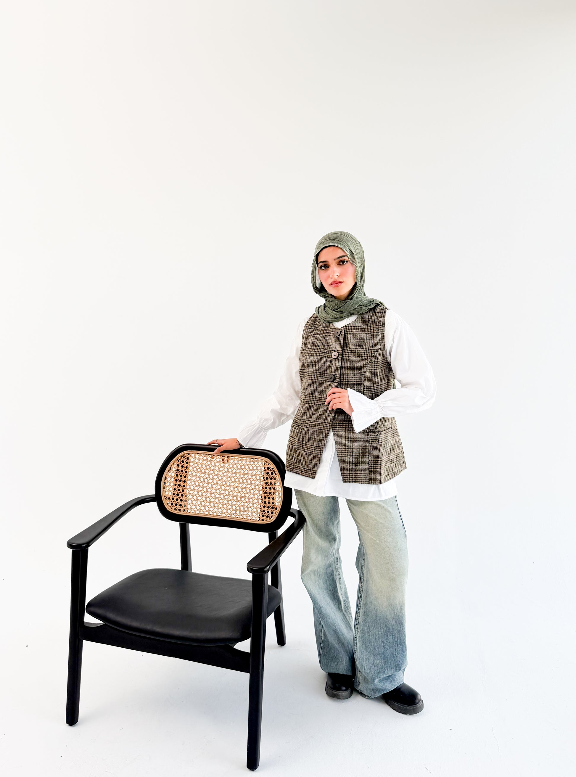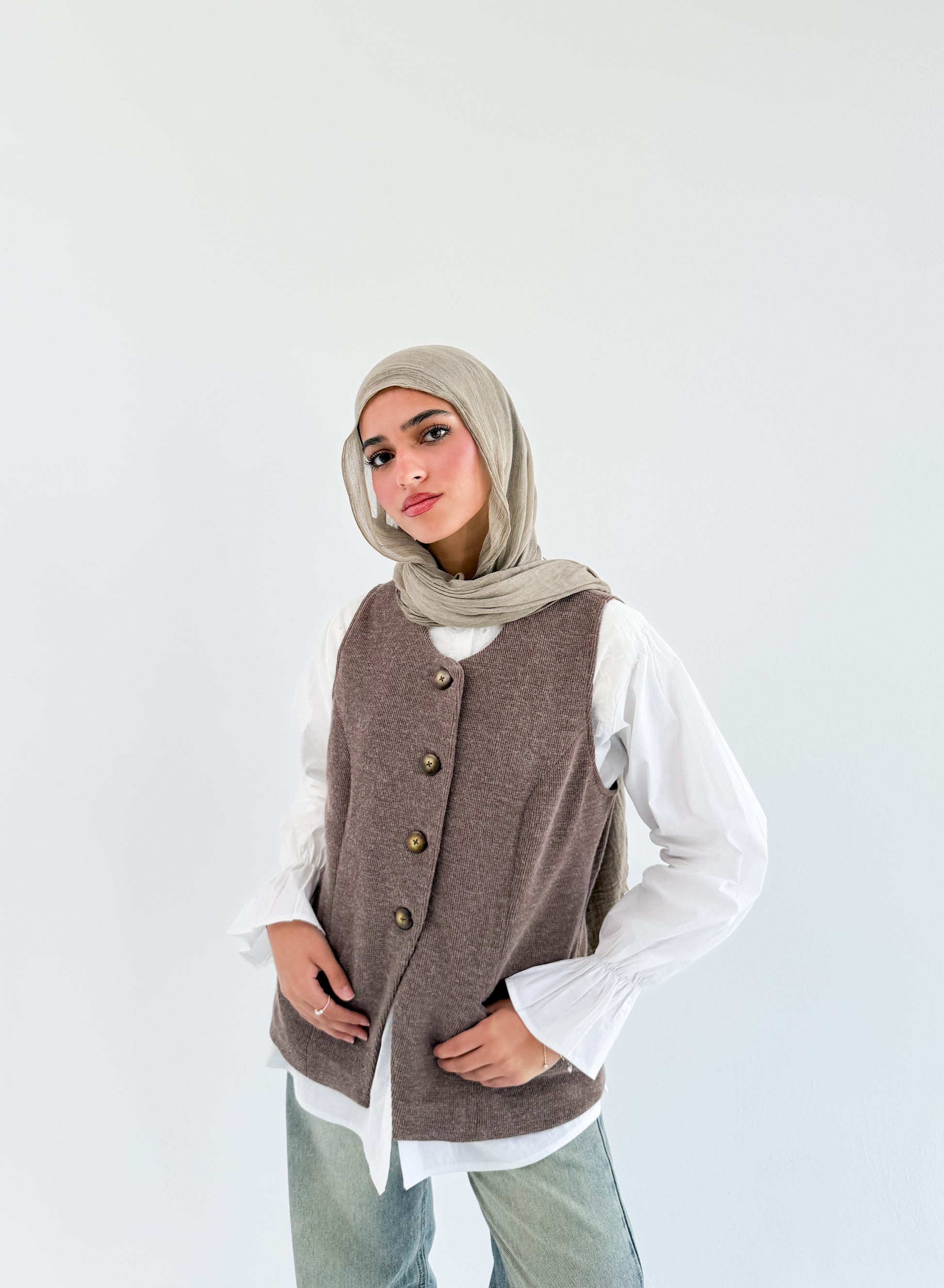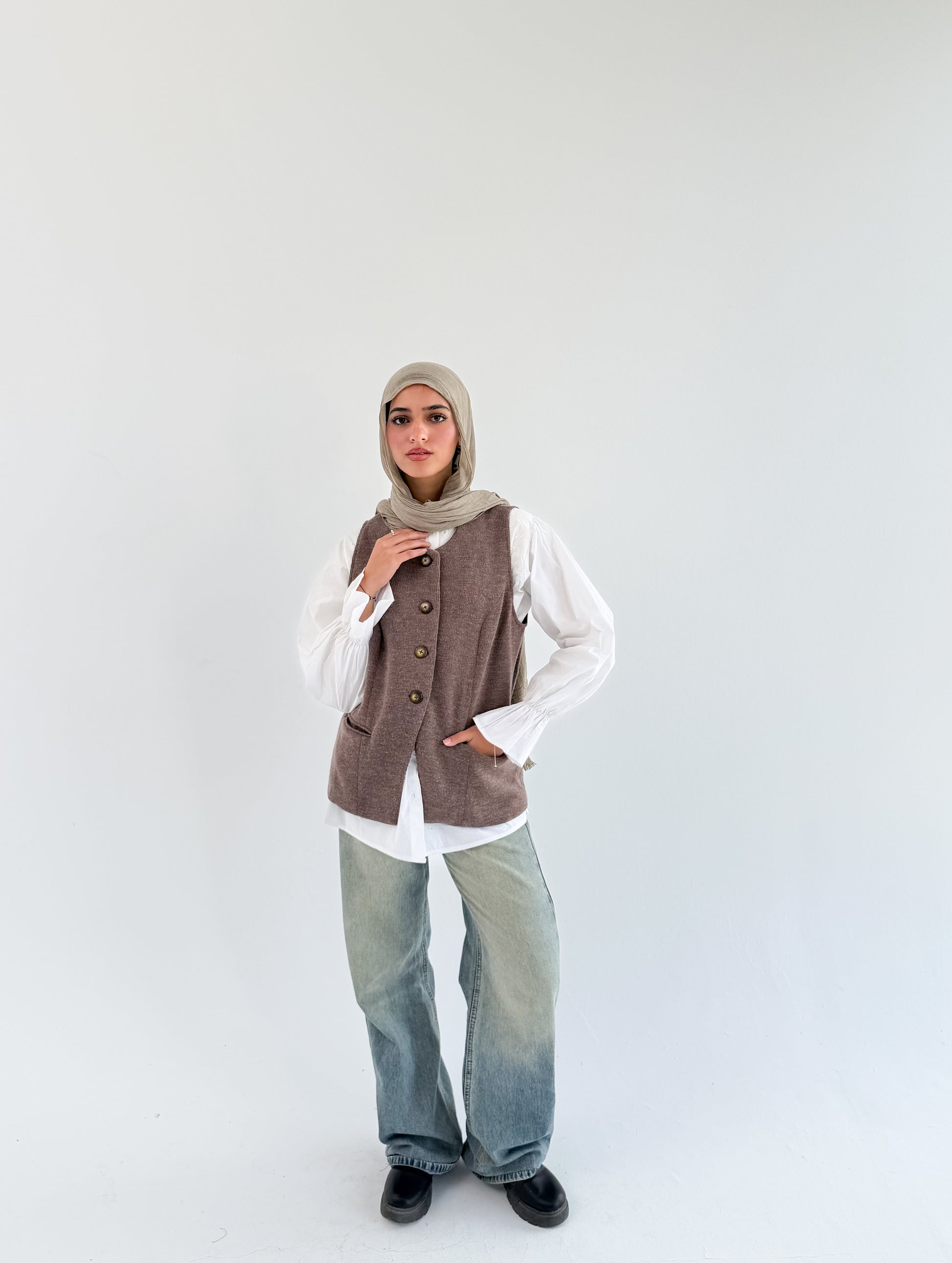 صُمم الفيست  بجيبين جانبيين وبطانة ناعمة  تزيد من راحتك وتعطيكِ شعور بالفخامة عند ارتدائه  مع ٤ أزرار إغلاق بنفس اللون، ليمنحك مظهرًا عمليًا وأنيقًا في الوقت نفسه.